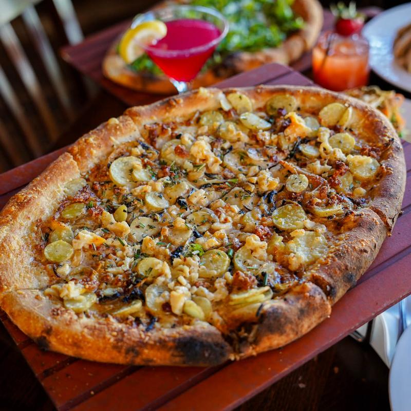 roasted onions, fingerling potatoes, clams, pancetta, garlic, parmesan and rosemary